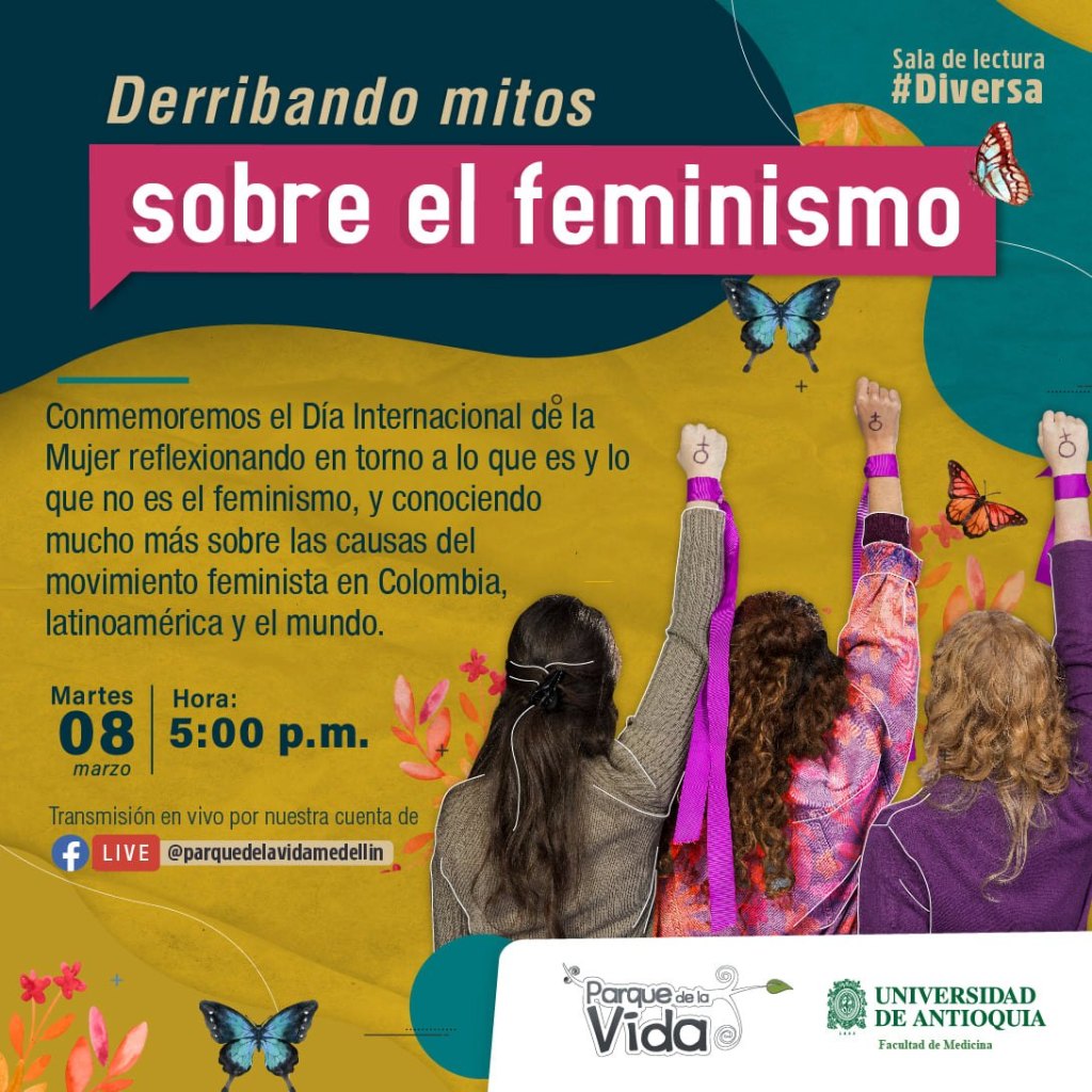 El pasado 8 de marzo 2022 con El Parque de la Vida de la Universidad de Antioquia y la Sala de Lectura Diversa hicimos un Facebook Live sobre los mitos del feminismo, en conmemoración del Día Internacional de la Mujer. Puedes ver el vídeo aquí.